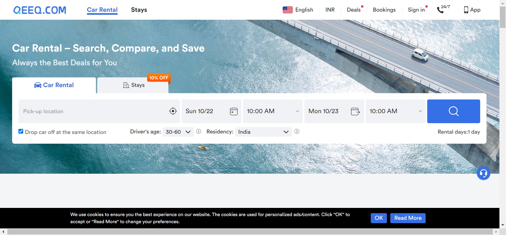 Next, input your desired pickup location along with the dates and times of your rental. Official-Qeeq will then display all available options from top car rental companies across various locations worldwide.