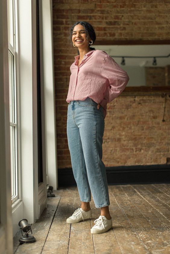 One option is to go for a casual but chic look by pairing high-waisted jeans with a crop top or off-the-shoulder blouse. Add some statement earrings or layered necklaces to dress up the look.