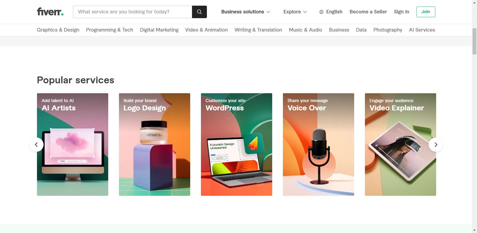 As a business owner or entrepreneur, you create an account on Fiverr – a simple process that takes just minutes. Once you’re all set up, you can browse through the vast array of freelance gigs available in various categories.