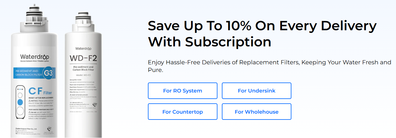 Waterdrop offers a diverse range of filters tailored to meet various needs. Each type is designed with specific filtration technologies to ensure optimal water quality.