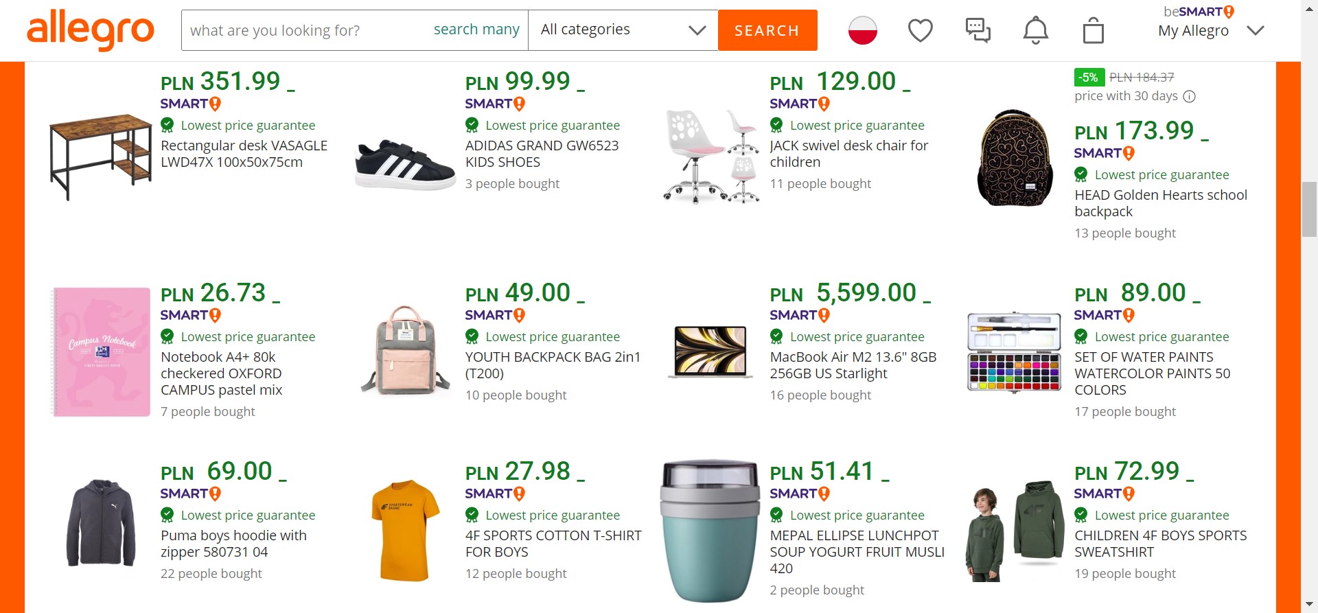 Allegro’s user interface is designed with the shopper’s experience in mind. The platform’s intuitive layout and organized categories ensure that customers can effortlessly explore the bargain selection. Bold headings and clear navigation make it easy to find deals within specific product categories, streamlining the process of discovering value-driven products.