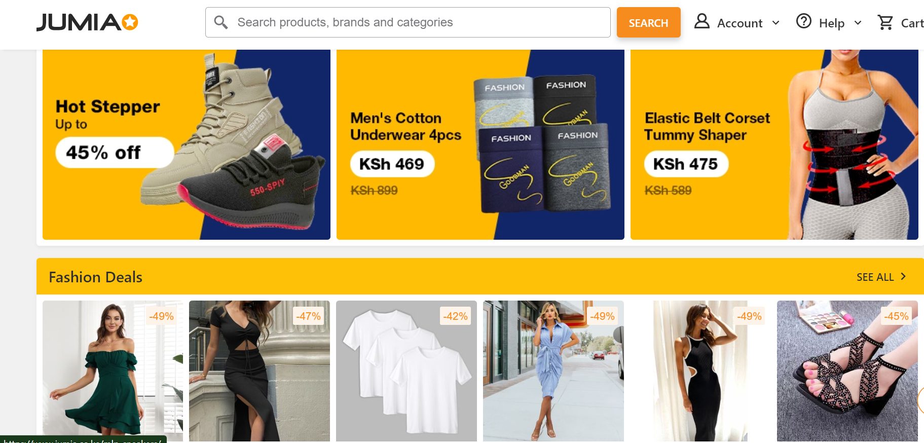 The Different Sections on Jumia Kenya